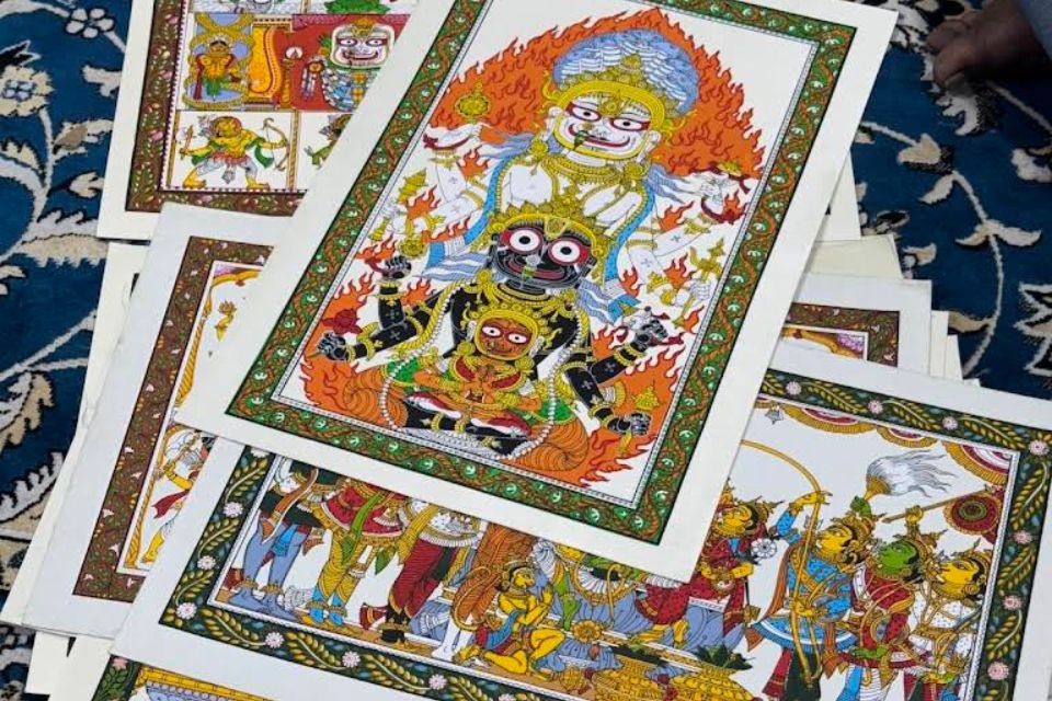 The village is renowned for its unique Pattachitra art, a traditional style of painting that involves intricate detailing, vibrant colors, and mythological narratives. The Pattachitra art form primarily depicts stories from Hindu epics like the Ramayana, Mahabharata, and Puranas. The artists use natural dyes and pigments to create these exquisite paintings on pieces of cloth, known as 'Patta' in the local language.